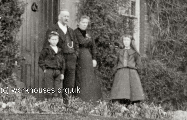 The figures in the above photo are presumed to be the workhouse master at that period, George Henry Brown, the matron, Mrs Kate Brown, and their children Dorothy and Walter.