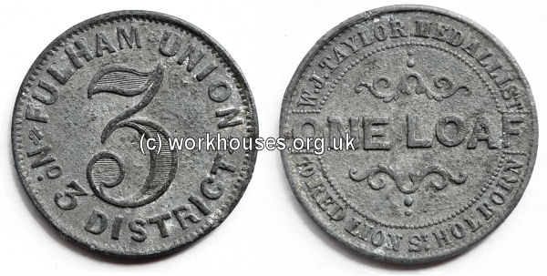 © Peter Higginbotham.Fulham Union bread token, date unknown.