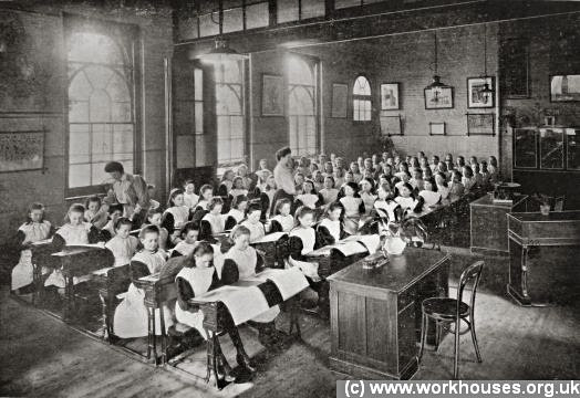 | North Surrey District School - girls' school, standards 3 and 4. A central partition has temporarily been drawn back). 1908. |