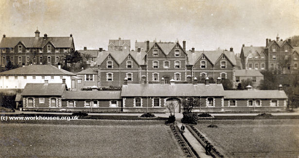 In 1868, a new workhouse was built at the north side of De Montfort Road, Lewes. Its construction cost £12,700 and it accommodated 205 inmates. Designed by Henry Currey, it had a single-storey entrance block and a corridor-plan main building with numerous gables. A separate infirmary was placed at the north-west of the main building. A school block accommodating forty children was added at the north-east in 1875. The workhouse location and layout are shown on the 1874 map below.