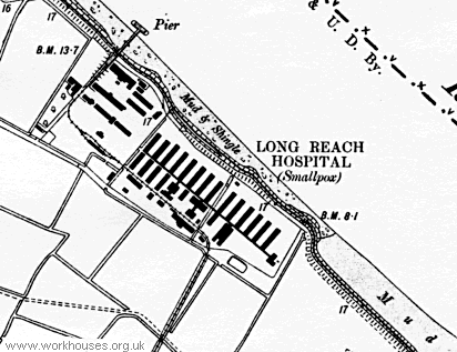 The Long Reach Hospital was erected by the Metropolitan Asylums Board at the end of 1901 to provide temporary extra accommodation during the smallpox epidemic which was then taking place. It was located on the banks of the Thames at Long Reach near Dartford, on land adjoining the shore base of the MAB's hospital ships Atlas, Endymion, and Castalia, and near to the permanent Joyce Green smallpox hospital which was still under construction.