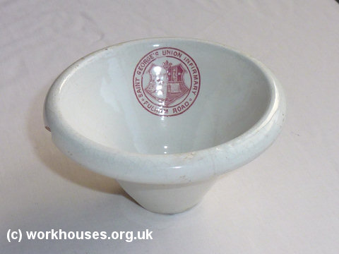 A small ceramic funnel from London's St George's Union infirmary on Fulham Road. |