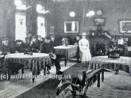 ![]() | Each sex had its own day-room used by the old and infirm, and by the able-bodied during "leisure" time. Although entertainment was limited, by the end of the 1920s a day-room might have a wireless for the inmates to listen to.